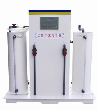 Above the raw material of the respective response measurement device, accurate measurement to the reactor after dosing, chlorine dioxide gas, the reactions that produce the jet pump is mixed with water and made into effective chlorine dioxide disinfection liquid.