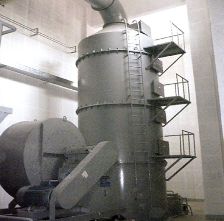 This device through the special odor adsorption of solvents as the absorption of liquid to purify the stench decomposition. By high pressure gas centrifugal fan pressure into (inhalation tower body the gas distribution system, first and store the liquid in contact with the water curtain, form a, make the waste gas of the dust, and use of water soluble in in the solution of waste gas odor of the potion in bank of China, reaction, absorption. Then flow to biological adsorption section, the use of special biological bacteria for adsorption decomposition malodorous gases, biological adsorption, after the second set 2 filter layer of gases which the content of dust has reached emissions standards, is on the second floor of the filter set the water device and catalyst decomposition area, use the odorous gases to further decomposition, the stench, methane, hydrogen sulfide set up pollutants such as emissions standards, to be on the safe side after purification of the tower of gas flowing through biological carbon adsorption again for using the characteristics of activated carbon, biological bacteria, to cultivate odorous gases adsorption decomposition. Again Finally the processed by the exhaust system standard gas vented into the air.