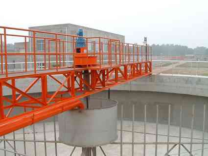 The drive device, work bridge, poling board, spindle, scraping the arm, scraper, enrichment gate, steady flow tube, field control cabinet etc. Scraping the arm in driving device drivers with center, scrape the spindle arm NiBan scraping the bottom of the sludge in deposits by extroversion inside to pool center set mud fights. When the operation process, because scraper, blow by foreign body card plug arm wait for an accident cause overload work, automatic alarm stop.